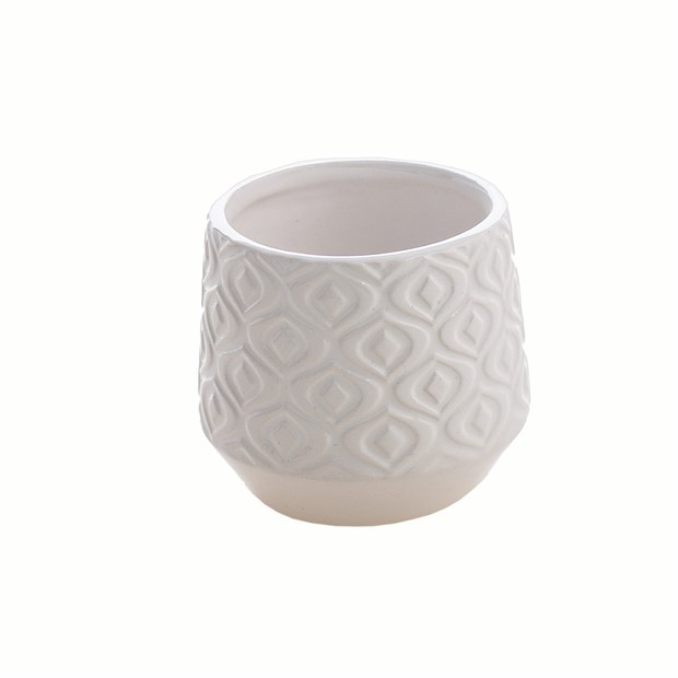 Vasetto bianco ceramica con sottopiatto in plast. h70x82x82