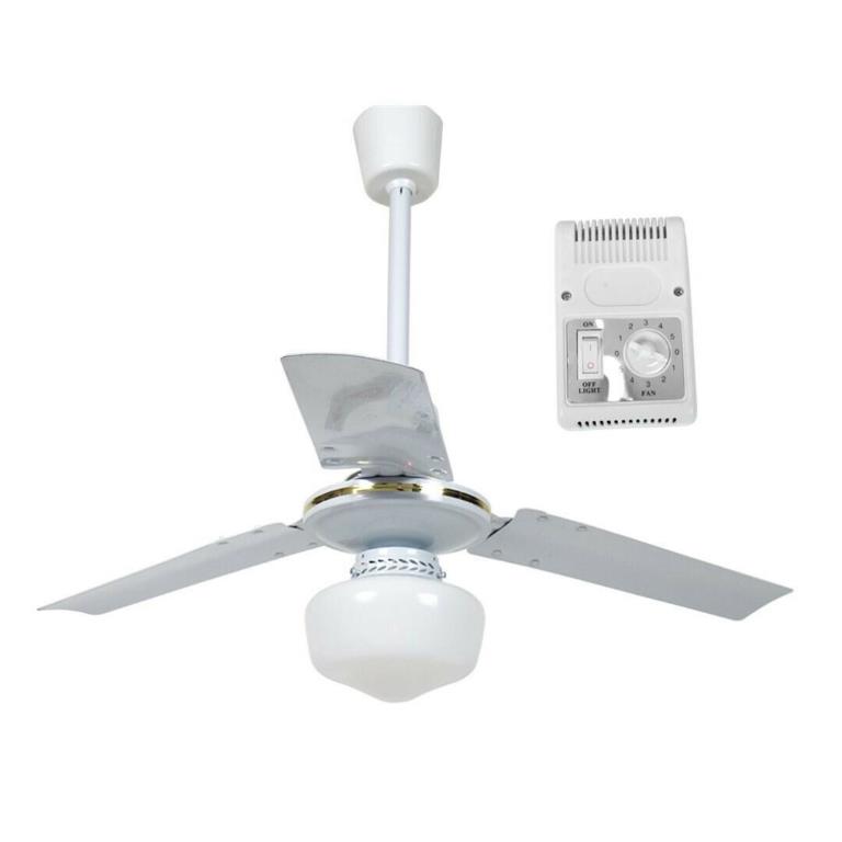 Ventilatore a Soffitto 3 Pale 92cm 3 Velocita’ + Luce In Metallo Con Timer 70W
