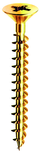 Mod. PANELVIT® in acciaio ottonato. per legno e pannelli truciolari, tasselli e lamiere sottili. Lubrificate Lubex. Taglio a croce PZ. Testa svasata piana. Diametro 3 mm Lunghezza 30 mm