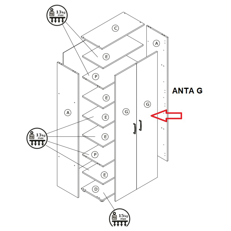 Zz-anta g x kit armadio/scarp. 2a cm.70x36x181h rovere s.