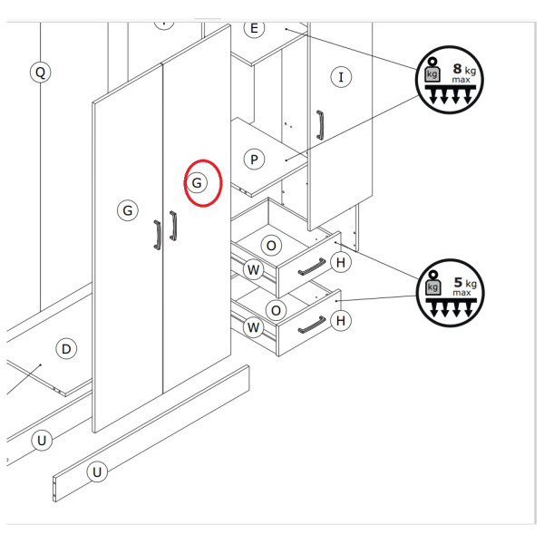 Zz-kit montaggio x kit armadio 2 ante + 2 cassetti 82x46x184,3 bianco