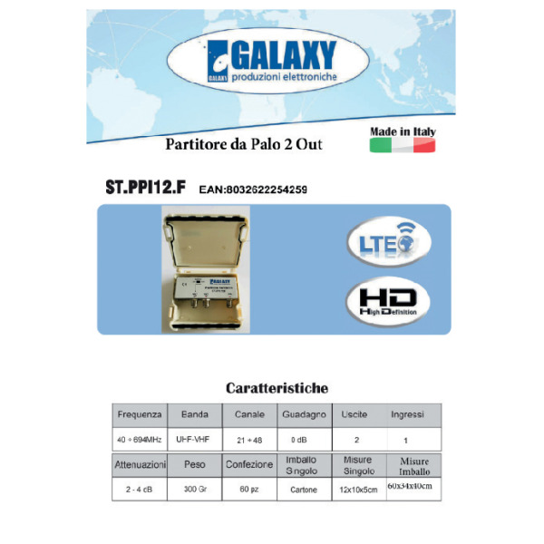 Partitore da esterno sat/dt 1 ingresso 2 uscite