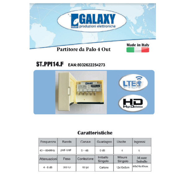 Partitore da esterno sat/dt 1 ingresso 4 uscite