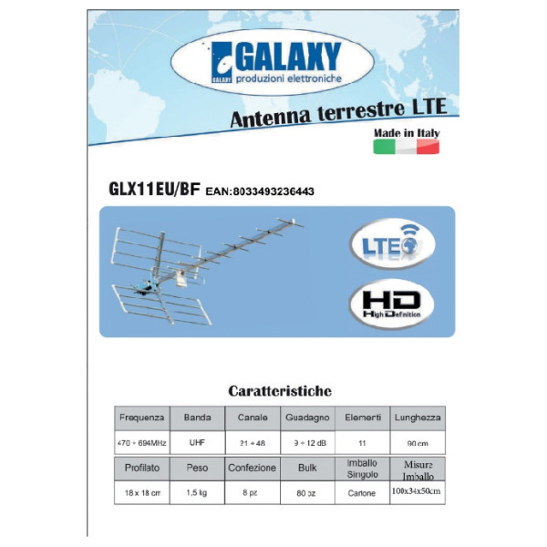 Antenna uhf digitale terres lte 11 elem imb cart