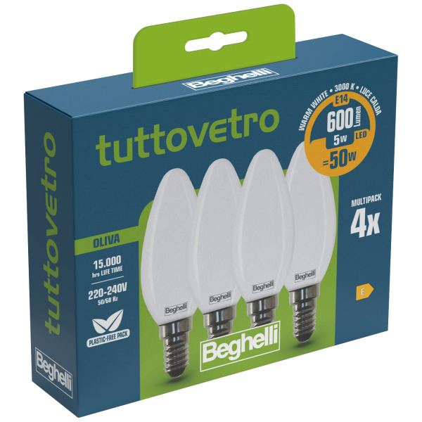 Beghelli led oliva e14 5w 58053 calda 3000k 4 pz - Ordine minimo 10 pezzi